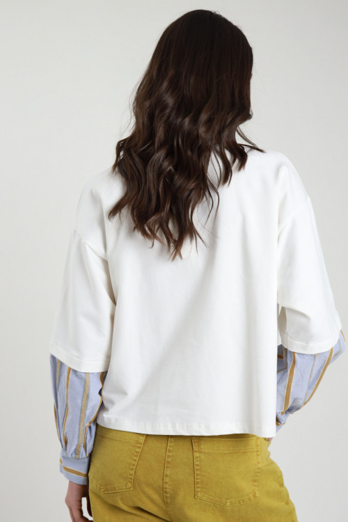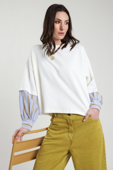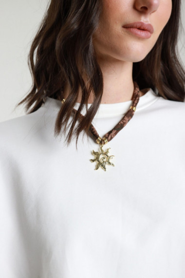 Übergroßes Sweatshirt mit Rundhalsausschnitt und kontrastierenden Hemdsärmeln + Halskette mit goldenem Sonnenanhänger. 100 % Co + 92 % Co 8 % Li
