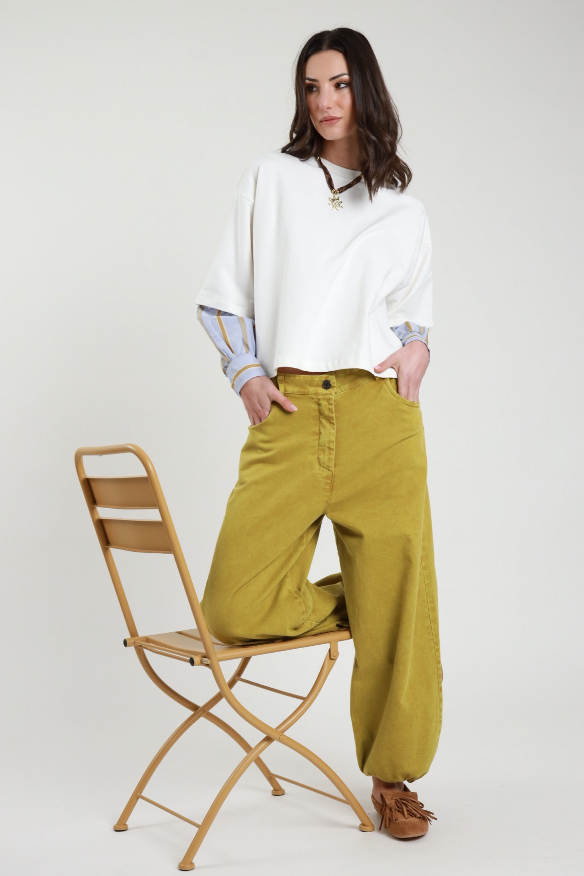 Hose aus Stretch-Baumwolle mit Gummizug an den Knöcheln, 4 Taschen, Reißverschluss und Knopfverschluss. 97 % CO 3 % Stück