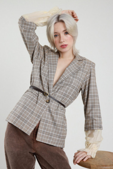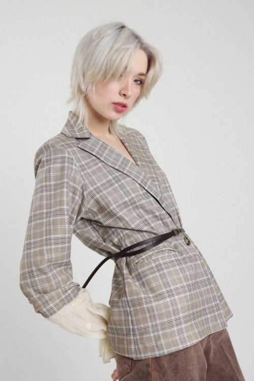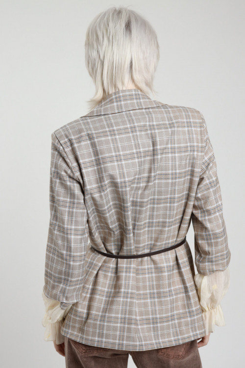Karierte Jacke mit klassischem Revers, Gürtel in der Taille und doppelten Stoffärmeln mit Gummizug an den Manschetten.  56%co 31%pl 12%vi 4%af+68%ly 32%pa