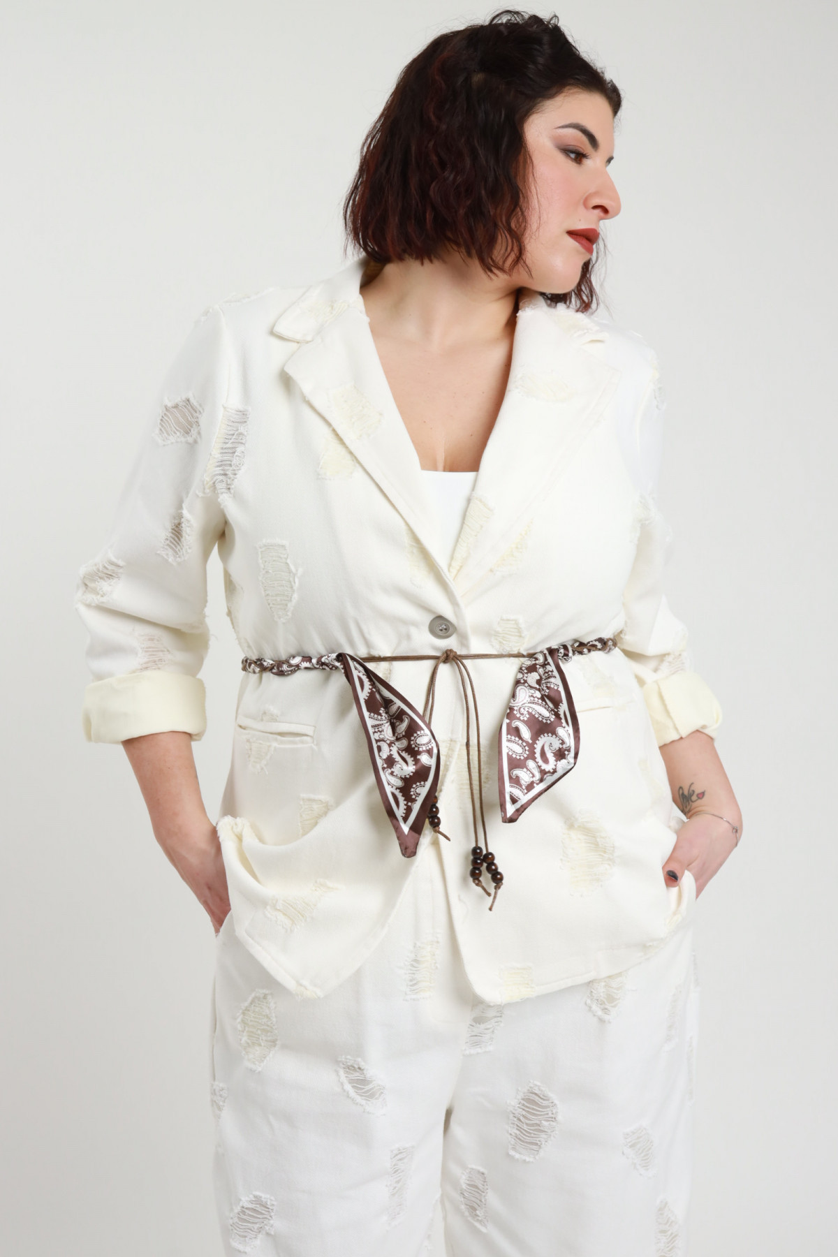 Gabardine-Jacke mit Rissen und Taillengürtel – Curvy Susy Star-Linie. 100 % Co + 100 % Pl