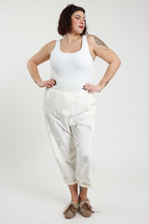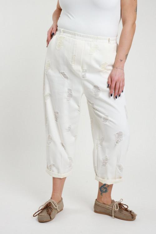 Ballonhose aus Gabardine mit Rissen und elastischem Bund – Curvy Susy Star-Linie. 100 % Co + 100 % Pl