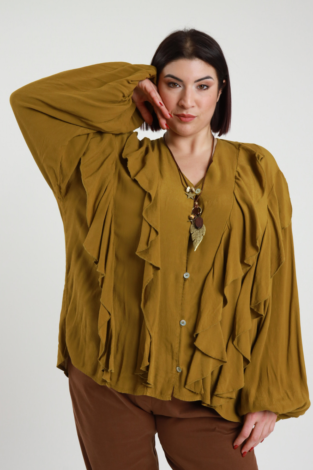 Hemd mit V-Ausschnitt aus Viskose mit Rouges und Halskette – Curvy Susy Star-Linie. 100 % vi