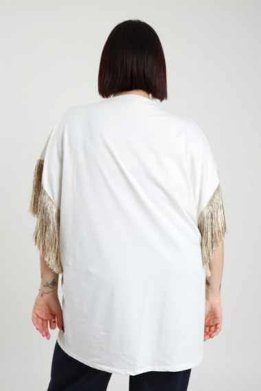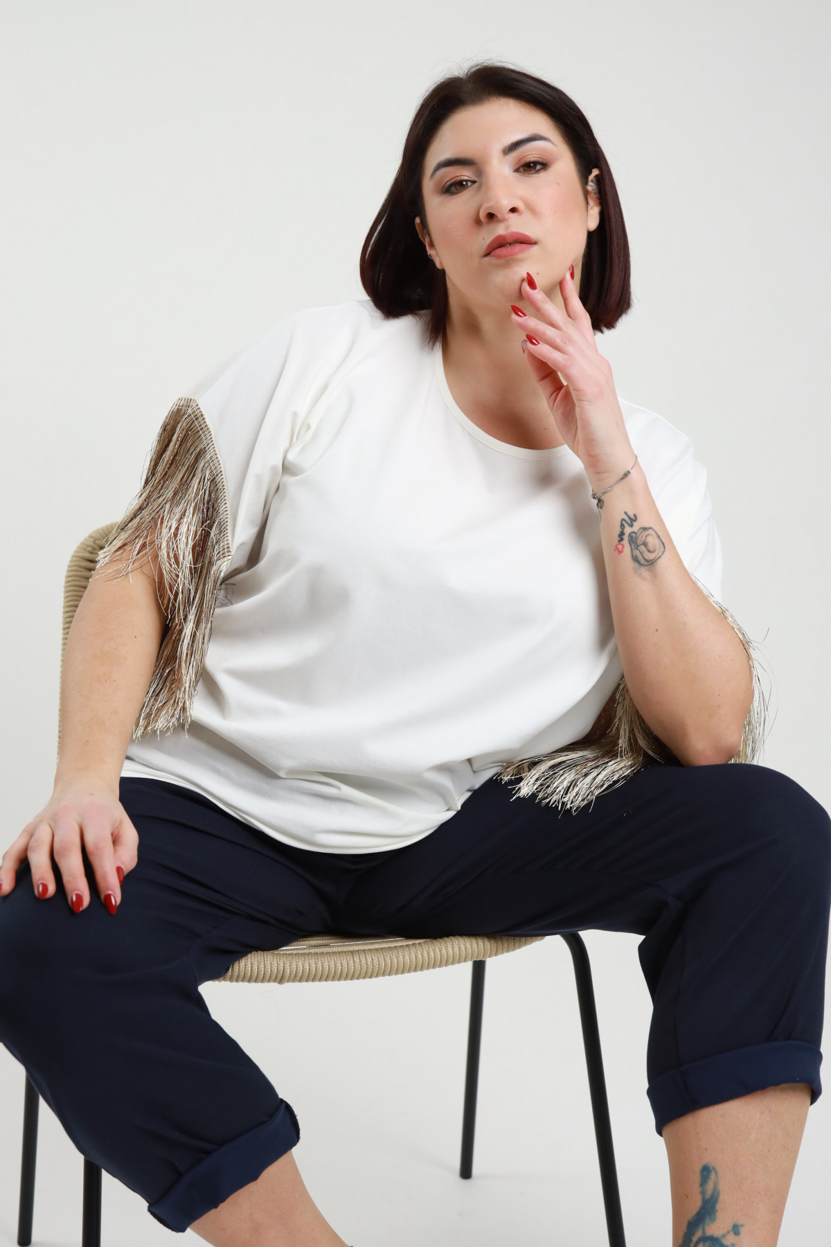 Übergroßes T-Shirt aus Stretch-Baumwolle mit Fransendetails an den Ärmeln – Curvy Susy Star-Linie. 94 % CO 6 % Stück