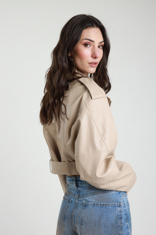 Kurze Bikerjacke aus Kunstleder. 100 % PU