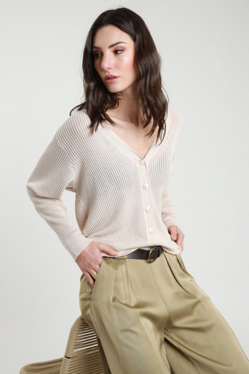 Gerippter Cardigan mit Knopfverschluss. 80 % vi 20 % pa