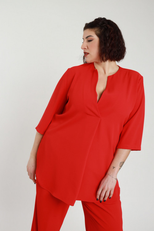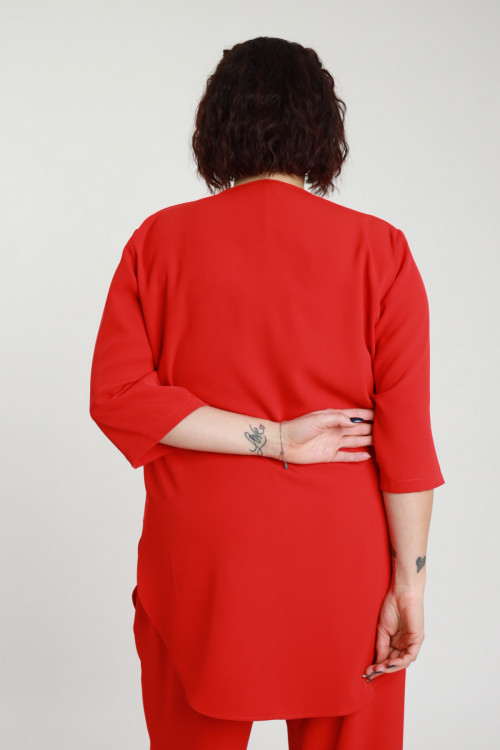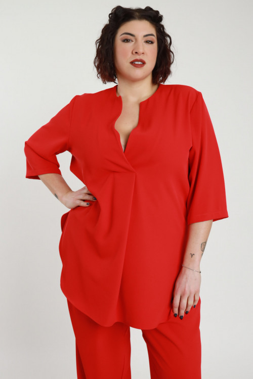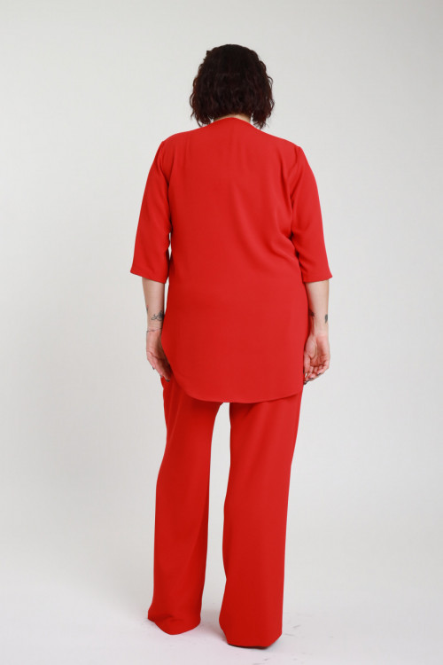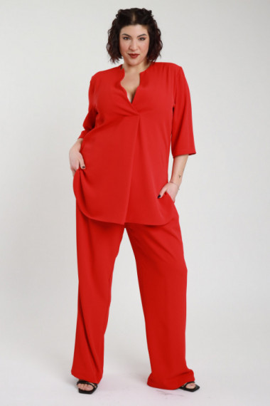 Blusenset mit Schlüssellochausschnitt und 3/4-Ärmeln + Hose mit geradem Bein – Curvy Susy Star-Linie. 96%pl 4%ea