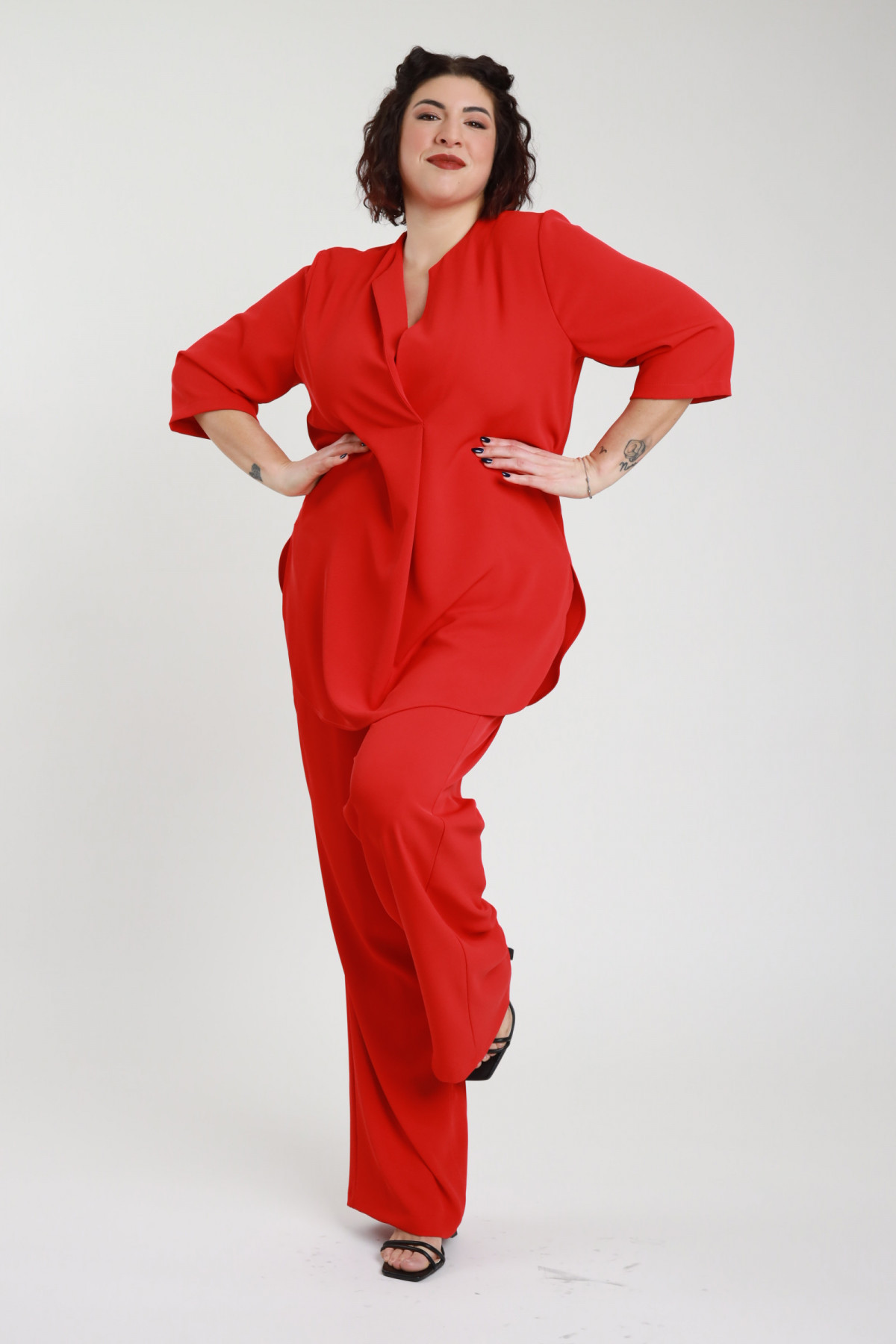 Tuta Scollo a V Incrociato con Arriccio sui Fianchi, Smanicata, Gamba Lunga - Linea Curvy Susy Star. 95%pl 5%ea