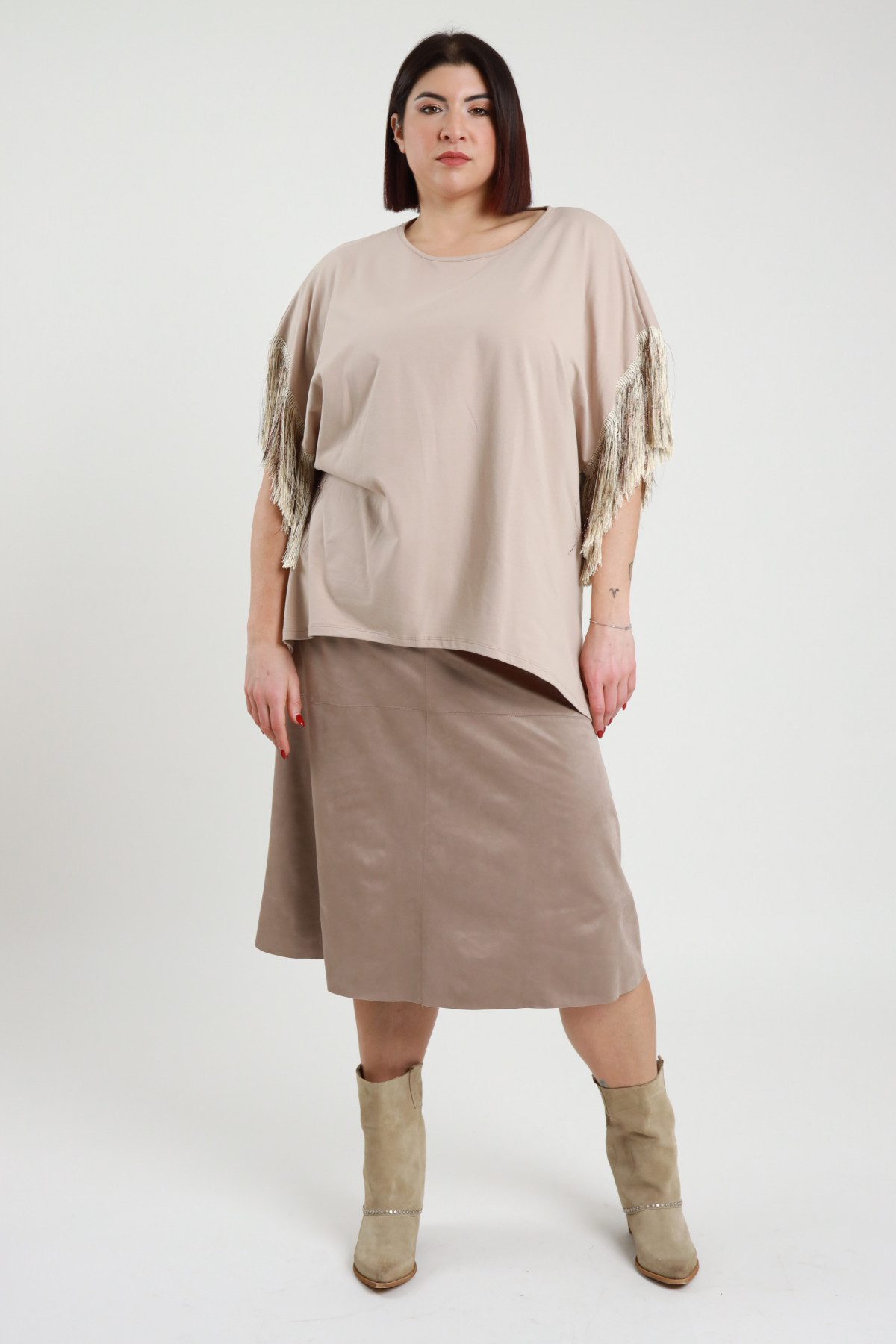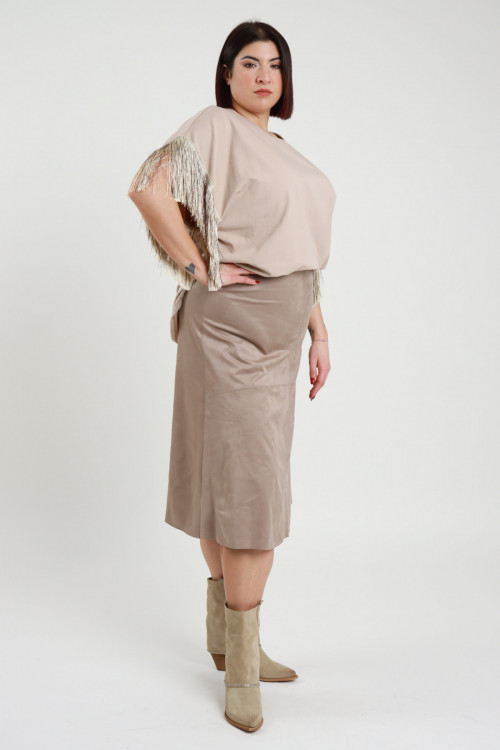 Midirock mit Reißverschluss an der Taille aus elastischem Eco-Dainetto – Curvy Susy Star Line. 88 % pl 12 % Stück