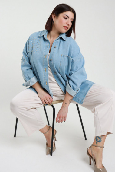 Denim-Strasshemd – Curvy Star-Linie. 98 % CO 2 % Stück
