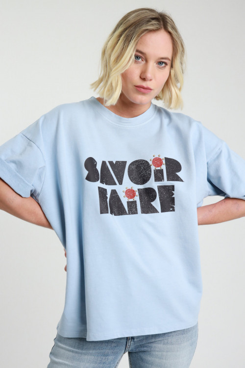 T-Shirt Over Girocollo Maniche Corte con Stampa sul Fronte ''Miami Beach''.