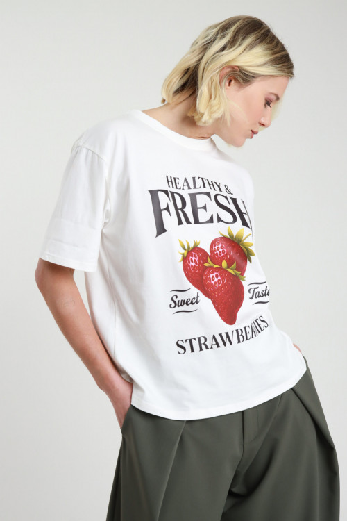 Felpa Over Crop Taglio Vico con Stampa Scritta New In Miami con Strass Applicati.