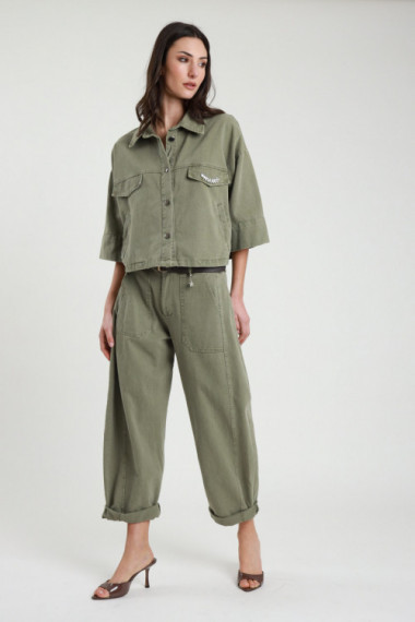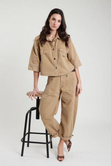 Pantalone Ovetto Over, Tasconi Sul Fronte, Cintura Con Gioiellino Stellina. 100%co