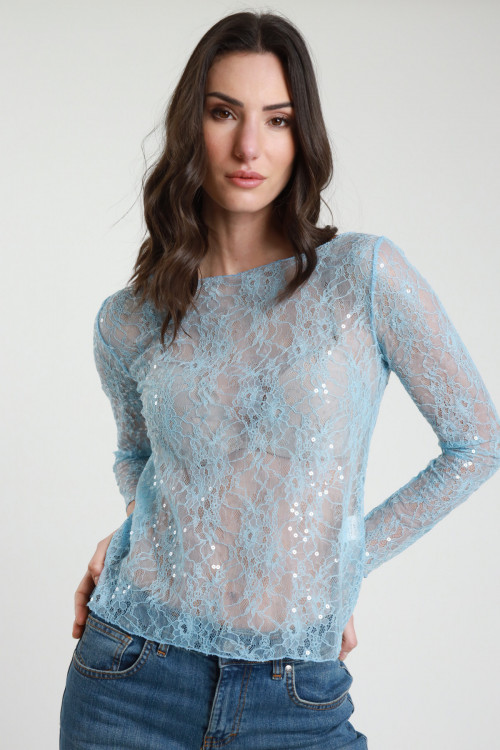 Langärmliges T-Shirt aus Spitze und Pailletten