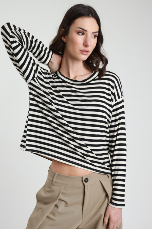 Gestreiftes Schulter-T-Shirt