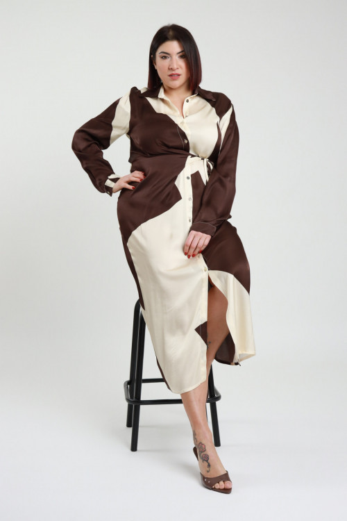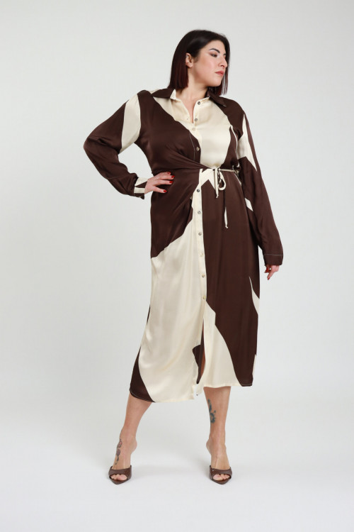 Gemustertes Viskose-Hemdkleid mit Raffungen und Schnürsenkeln an der Taille – Curvy Susy Star Line. 100 % vi