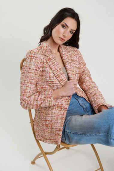 Giacchino In Paillettes Corto Con Bavero e Chiusura Su Tre Bottoni. Tasche Finte.