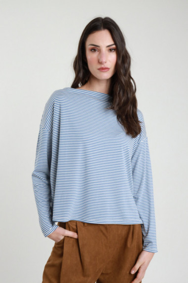 Langärmliges T-Shirt mit Streifenmuster und U-Boot-Ausschnitt aus Stretch-Viskose. 95 %vi 5 %ea