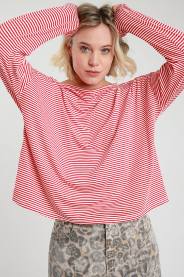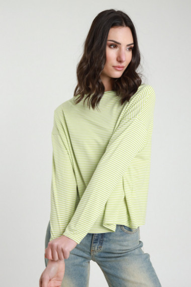 Langärmliges T-Shirt aus Stretch-Viskose, gestreift. 95 %vi 5 %ea