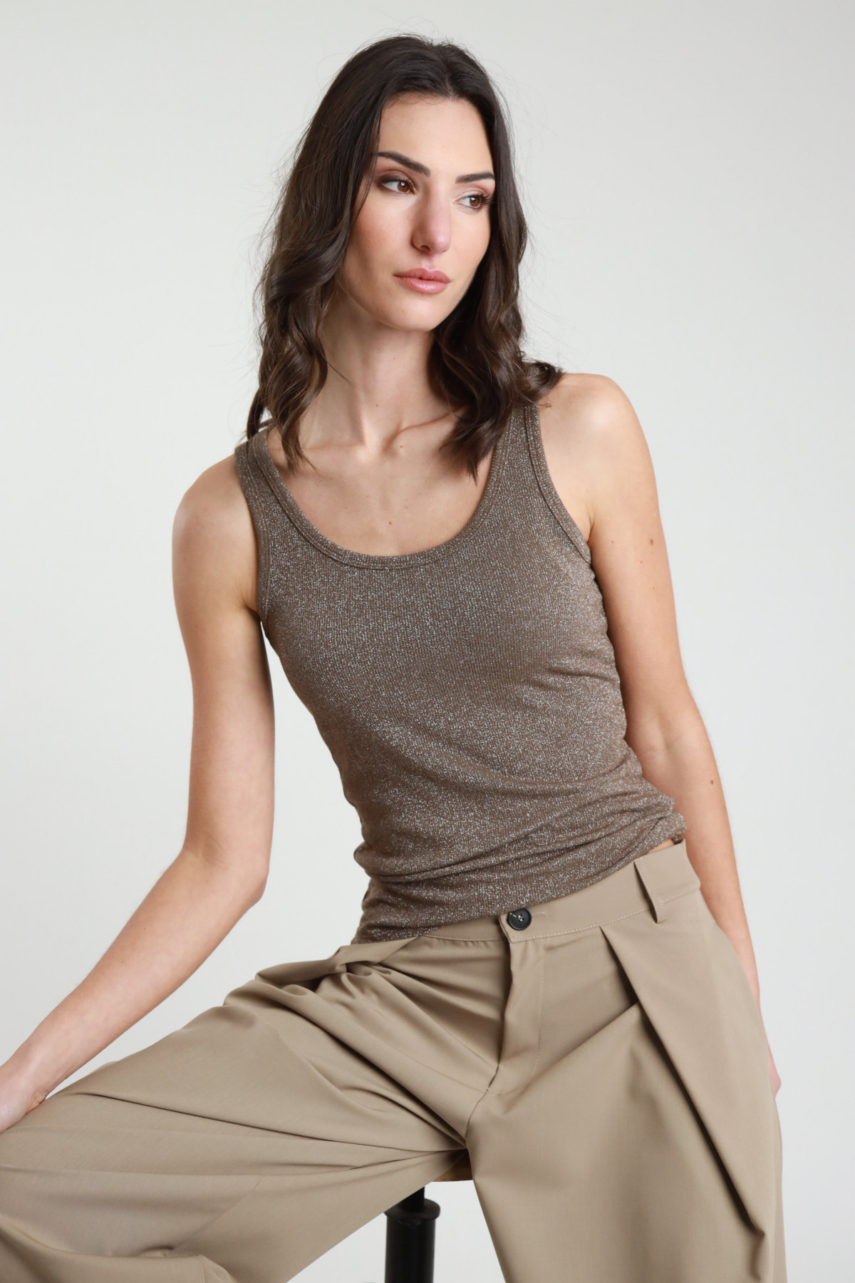 Tanktop aus elastischem Viskose-Lurex. 60 %vi 35 %pl 5 %ea