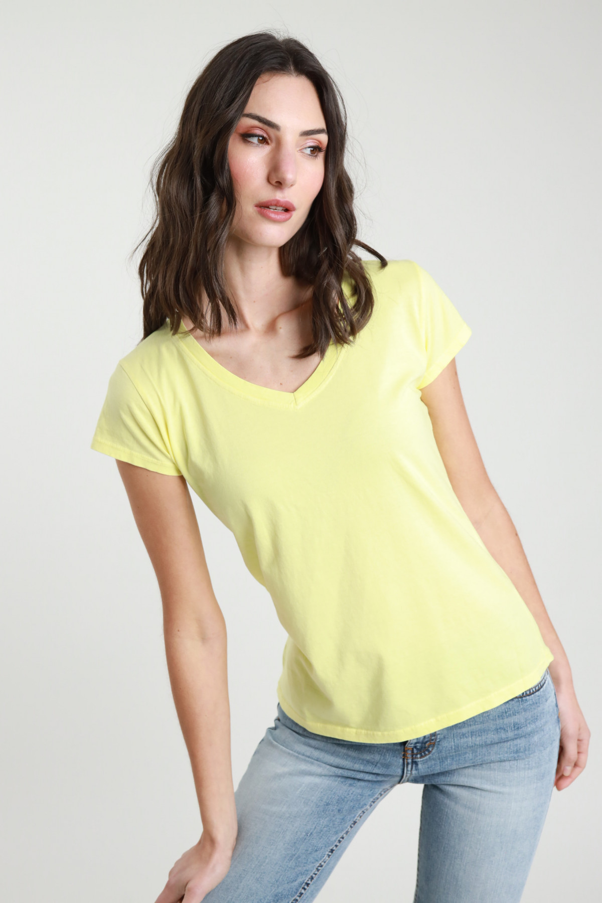 Halbarm-T-Shirt mit V-Ausschnitt aus Baumwolle. 100 % co
