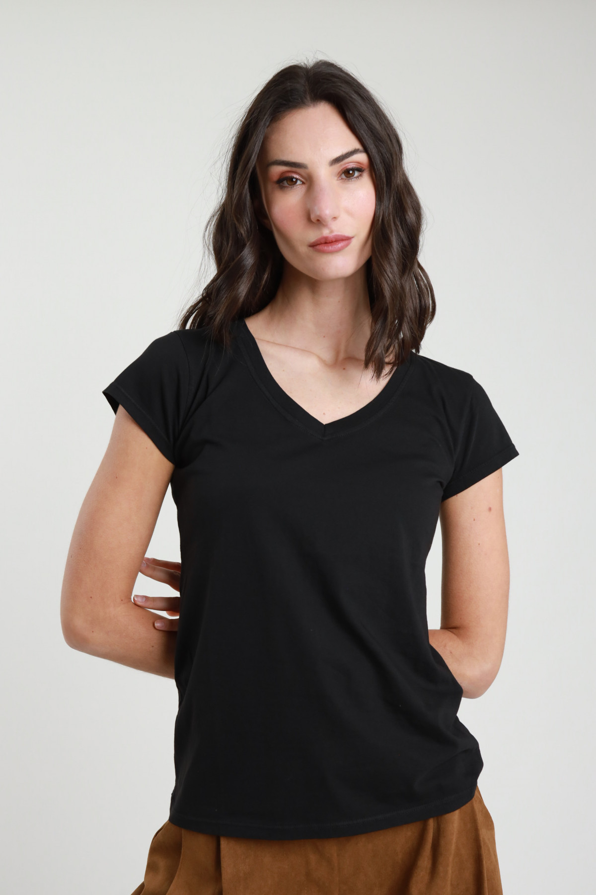 Halbarm-T-Shirt mit V-Ausschnitt aus Baumwolle. 100 % co