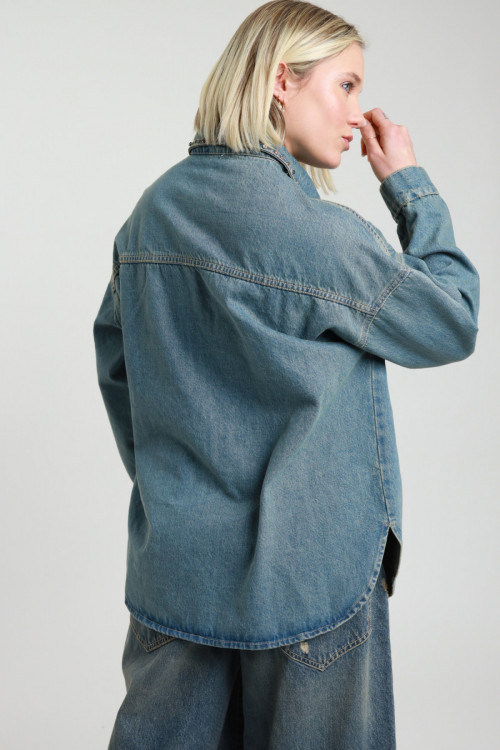 Bermuda Over aus Denim, sandgestrahlte Waschung und Risse, Reißverschluss und Knopfverschluss. 100 % co