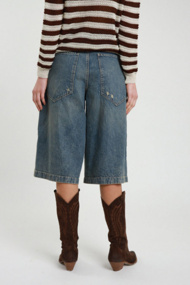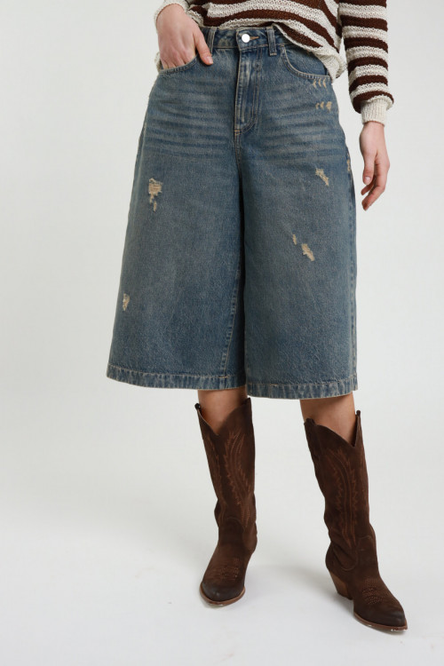 Bermuda Over aus Denim, sandgestrahlte Waschung und Risse, Reißverschluss und Knopfverschluss. 100 % co