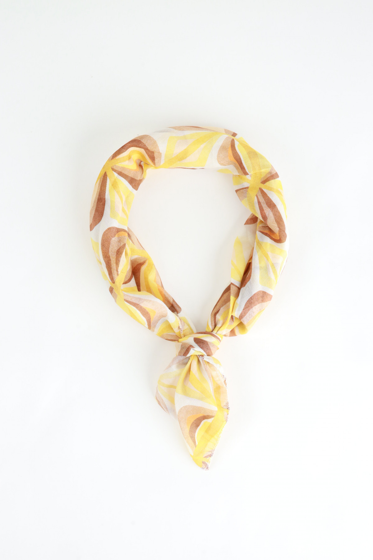 Kurzer Schal aus Baumwolle und Seide, geometrisches Muster. 80%co 20%se