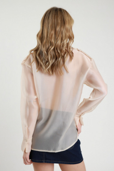 Camicia in Organza con Taschine con Pattina Applicate sul Fronte.