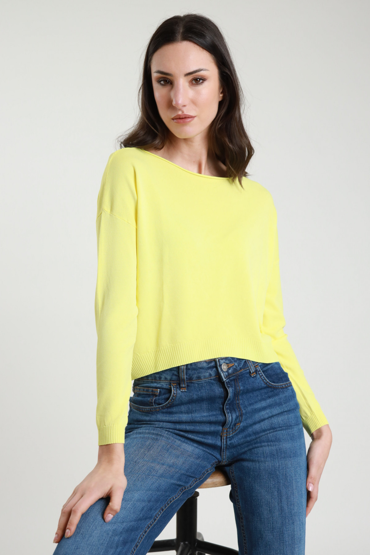 Maglia Punto Riso Manica 3/4, Scollo Barchetta. 100%co
