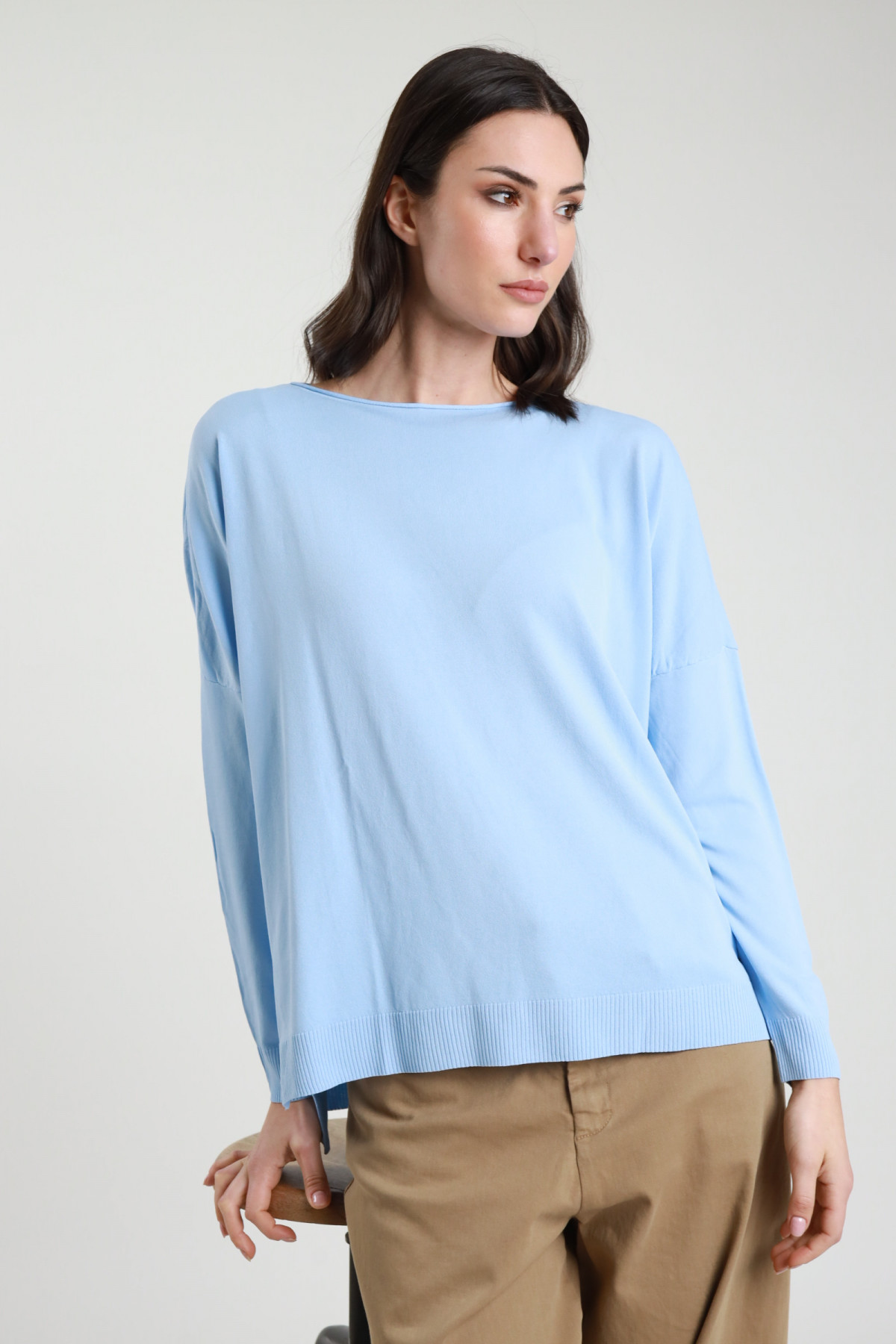 Übergroßer Pullover mit U-Boot-Ausschnitt, Rohschnitt, Rippen an Bündchen und Saum sowie Seitenschlitzen. 63%vi 37%ny