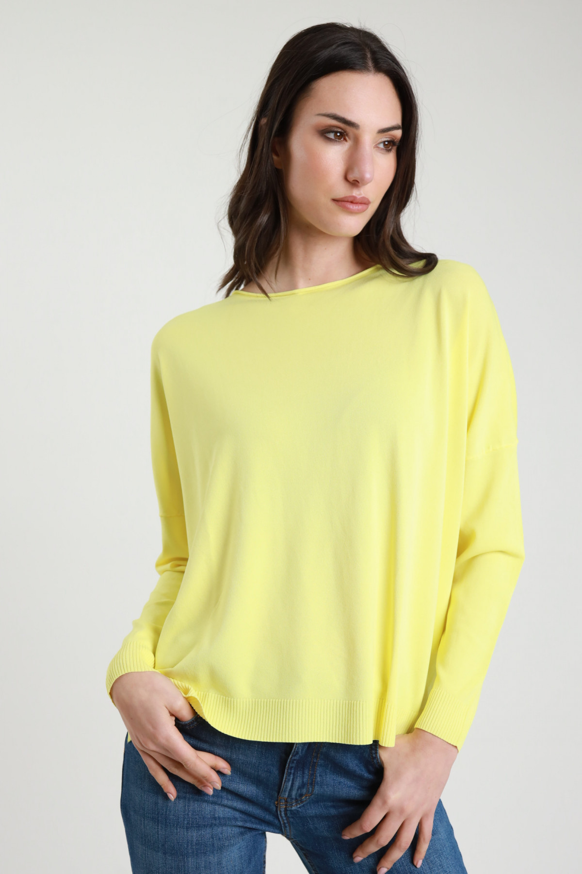 Übergroßer Pullover mit U-Boot-Ausschnitt, Rohschnitt, Rippen an Bündchen und Saum sowie Seitenschlitzen. 63%vi 37%ny