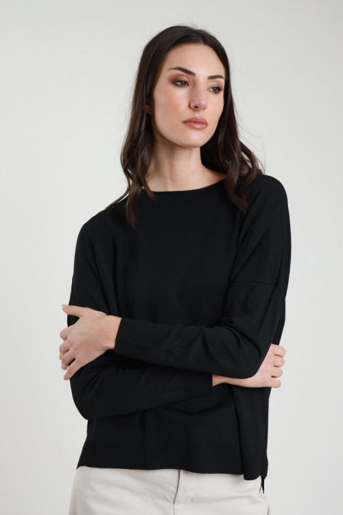 Übergroßer Pullover mit U-Boot-Ausschnitt, Rohschnitt, Rippen an Bündchen und Saum sowie Seitenschlitzen. 63%vi 37%ny