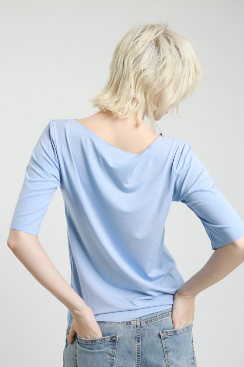 T-Shirt mit Rundhalsausschnitt aus Stretch-Viskose mit rohem Schnitt und halblangen Ärmeln. 94 %vi 6 %ea