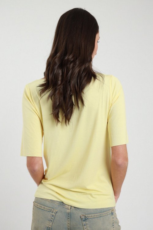 T-Shirt mit Rundhalsausschnitt aus Stretch-Viskose mit rohem Schnitt und halblangen Ärmeln. 94 %vi 6 %ea