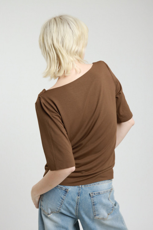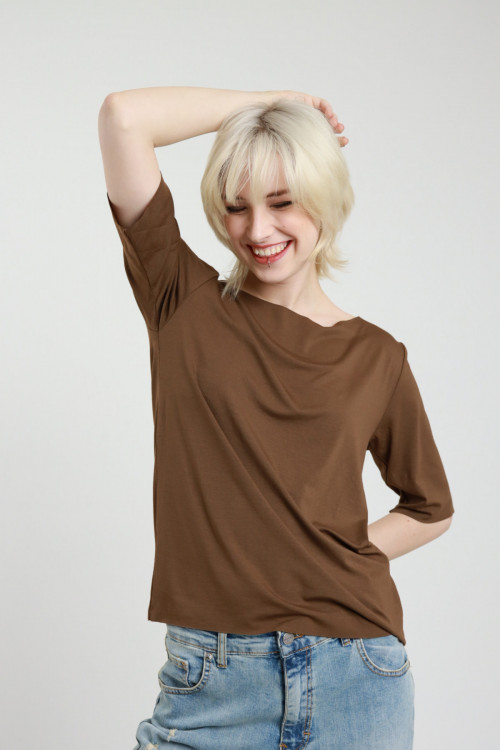 T-Shirt mit Rundhalsausschnitt aus Stretch-Viskose mit rohem Schnitt und halblangen Ärmeln. 94 %vi 6 %ea