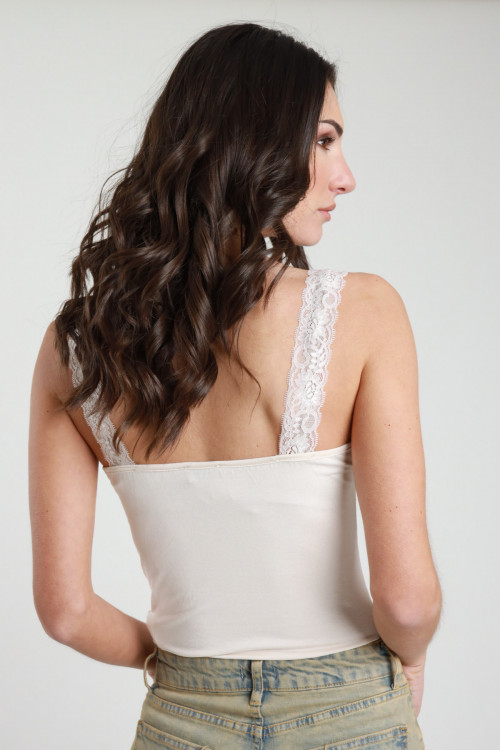 Crop-Top aus Spitze mit schmalen Trägern und gepolsterten Körbchen. 90%ny 10%ea