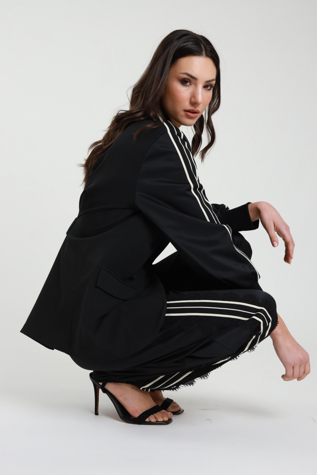 Giacca Doppiopetto con Manicotti in Pizzo e Spille Gioiello Rimovibili sul Rever.