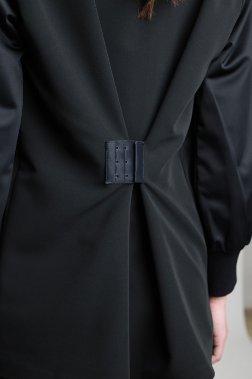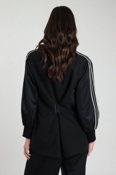 Übergroße Jacke aus doppeltem Stoff mit Pattentaschen und Schmuckbrosche, Puffärmeln in Satinoptik mit Seitenbändern und elastischen Bündchen. Verstellbarer Verschluss auf der Rückseite. 75%pl 20%vi 5%ea+100%pl+100%pl+95%co 5%ea NE