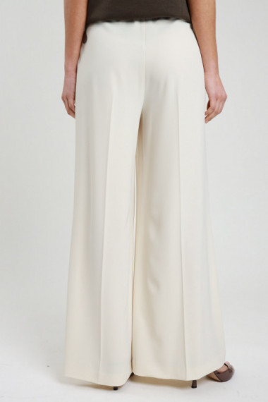 Pantalone a Palazzo Elasticizzato con Pences e Elastico in Vita. 97%pl 3%ea