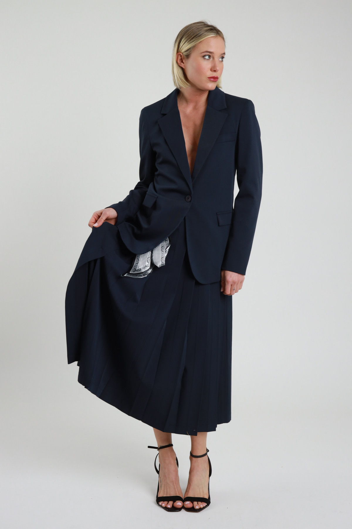 Weiter, hoch taillierter Midirock mit Seitenschlitz, Reißverschluss hinten und Gürtelschlaufen in der Taille. Schal befestigt. 78 %pl 18 %vi 4 %ea