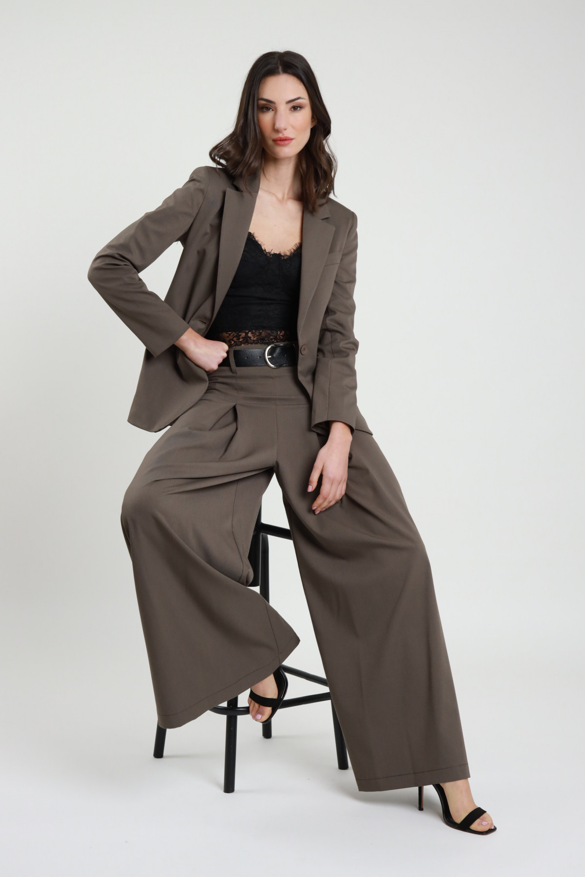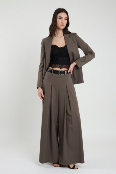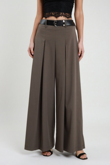 Palazzo-Hose mit Falten auf der Vorderseite. Nahtloser Bund, seitlicher Reißverschluss, eingearbeiteter Gürtel. 78 %pl 18 %vi 4 %ea