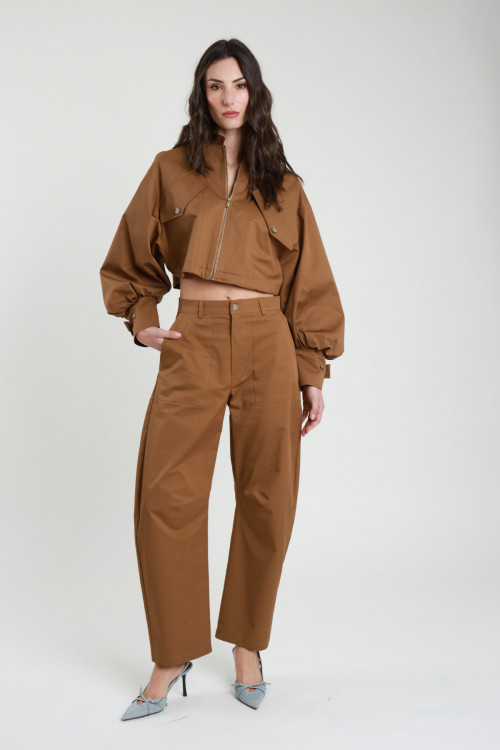 Pantalone Balloon 2 Tasche, Passanti in Vita, Chiusura Zip e Bottone.