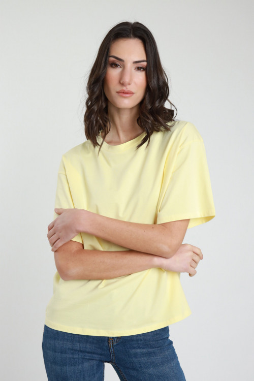 T-shirt in Cotone Corta a Mezza Maniche con Girocollo Gioiello e Bottone sul Retro.