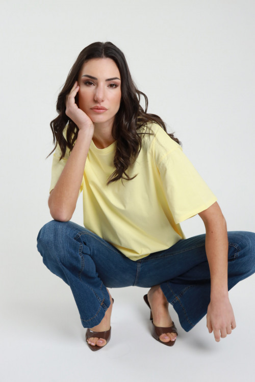 T-Shirt Over Girocollo Maniche Corte con Stampa sul Fronte ''Miami Beach''.