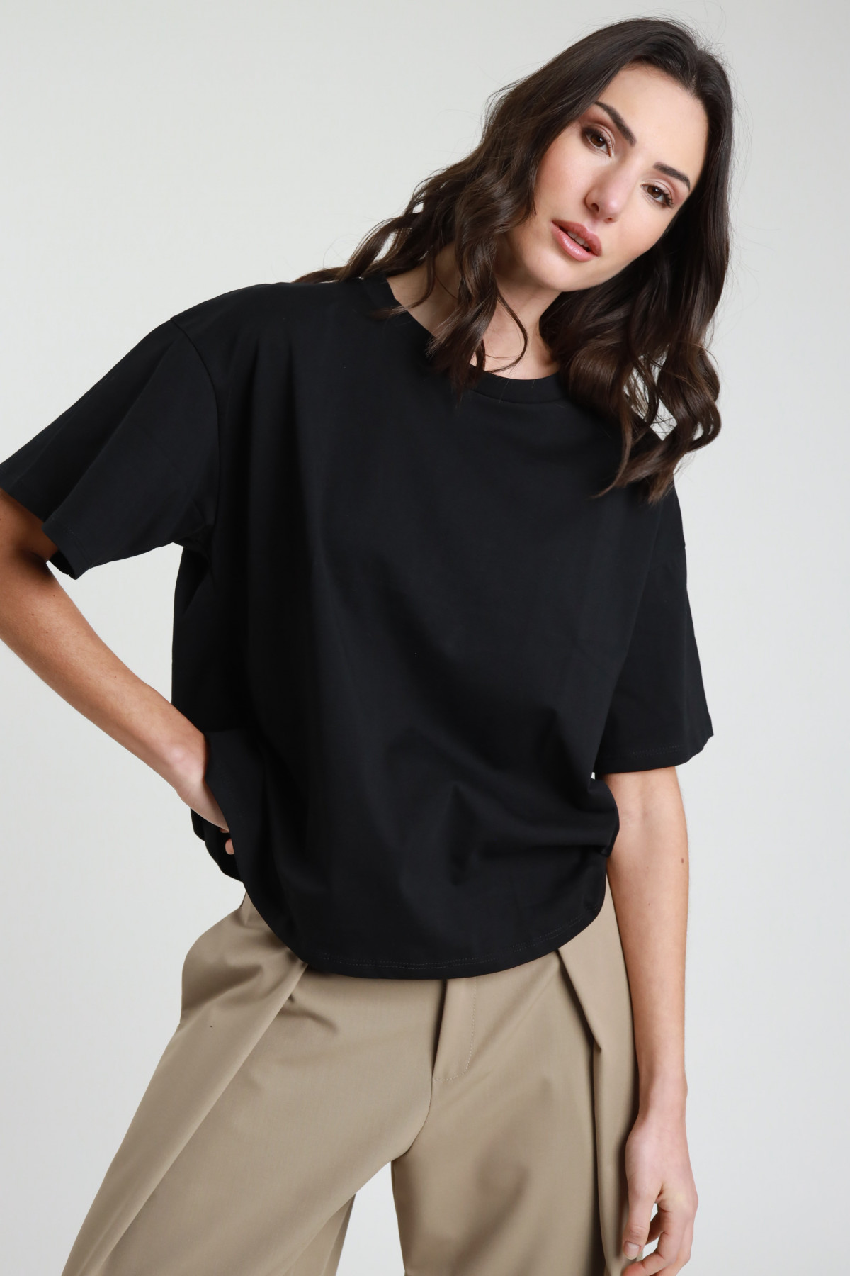 T-shirt in Cotone Corta a Mezza Maniche con Girocollo Gioiello e Bottone sul Retro.
