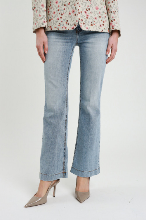 Flare-Jeans aus Stretch-Baumwolle, leicht marmorierte Waschung, Pattentaschen auf der Rückseite. 98 % CO 2 % Stück