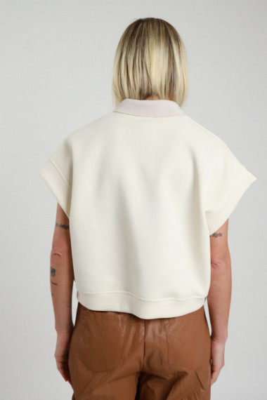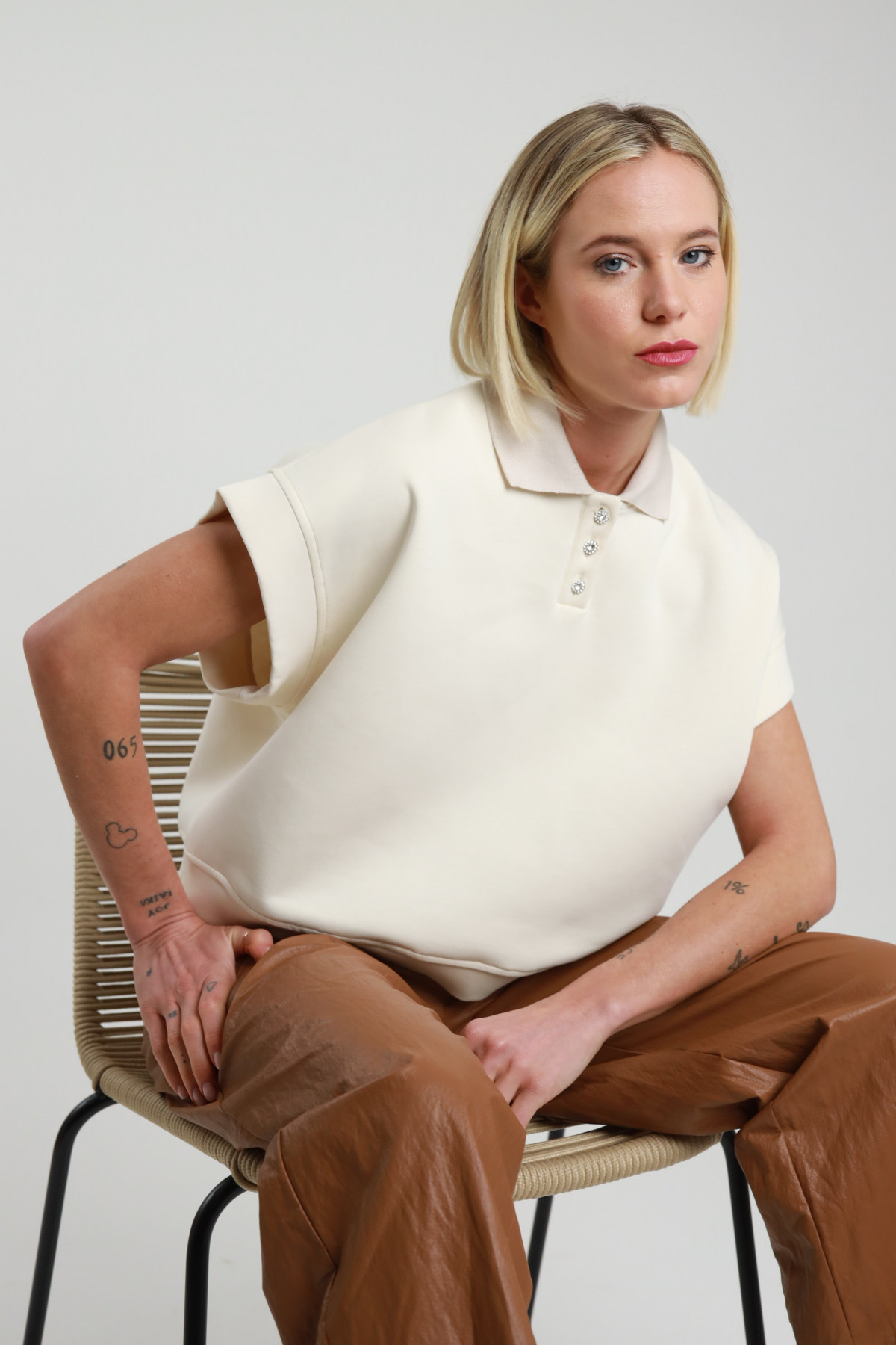 Übergroßes Poloshirt mit halben Ärmeln aus Fleece mit Schmuckknöpfen. 72%co 20%pl 8%ea