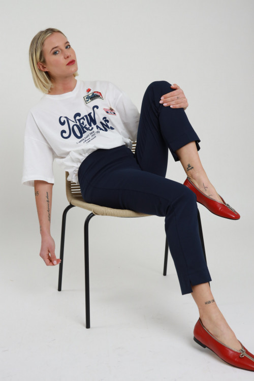 Pantalone Ovetto Over, Tasconi Sul Fronte, Cintura Con Gioiellino Stellina. 100%co