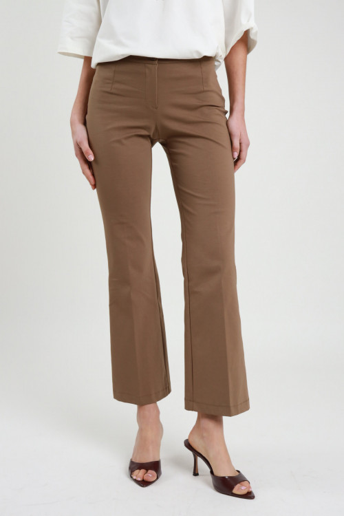 Ausgestellte Hose, Ein-Knopf-Verschluss und Reißverschluss vorne, ohne Taschen. 52 %co 40 %ny 8 %ea